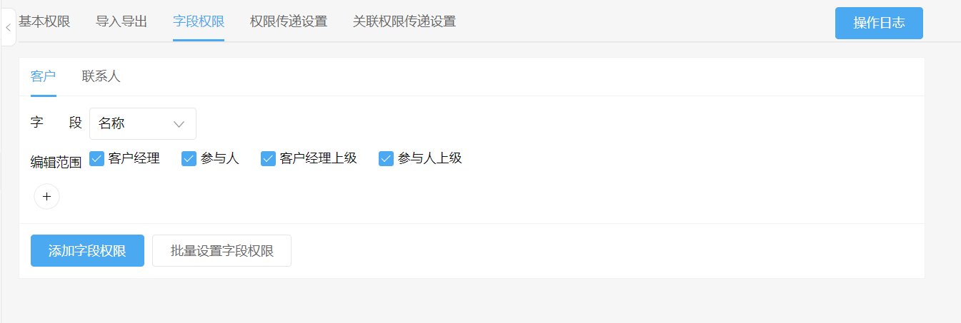 对客户和联系人的卡片字段权限进行设置,设置不同人员是否有查看权限和编辑权限。