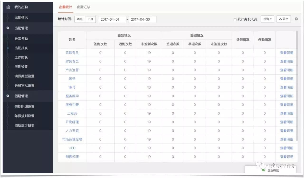 出勤了几天,缺勤了几天,系统自动帮你计算