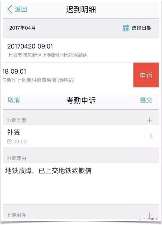 申诉申请在线处理,通过后考勤记录即可恢复正常