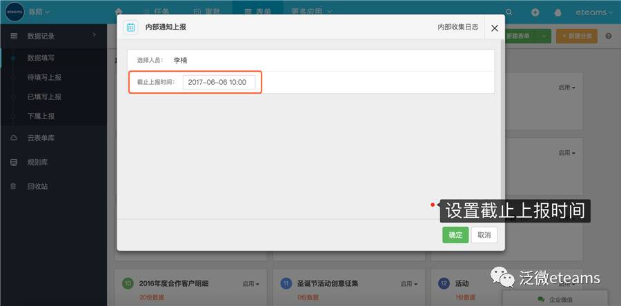 当我们需要向企业内部搜集意见想法、投票,或者是工作业绩上报时,可以通过表单的内部通知上报功能实现。之前在通知上报时,可能会出现这样的情况,信息采集的不及时导致影响了汇总的进度和信息的有效性,为此我们增加了表单通知上报的截止时间功能。