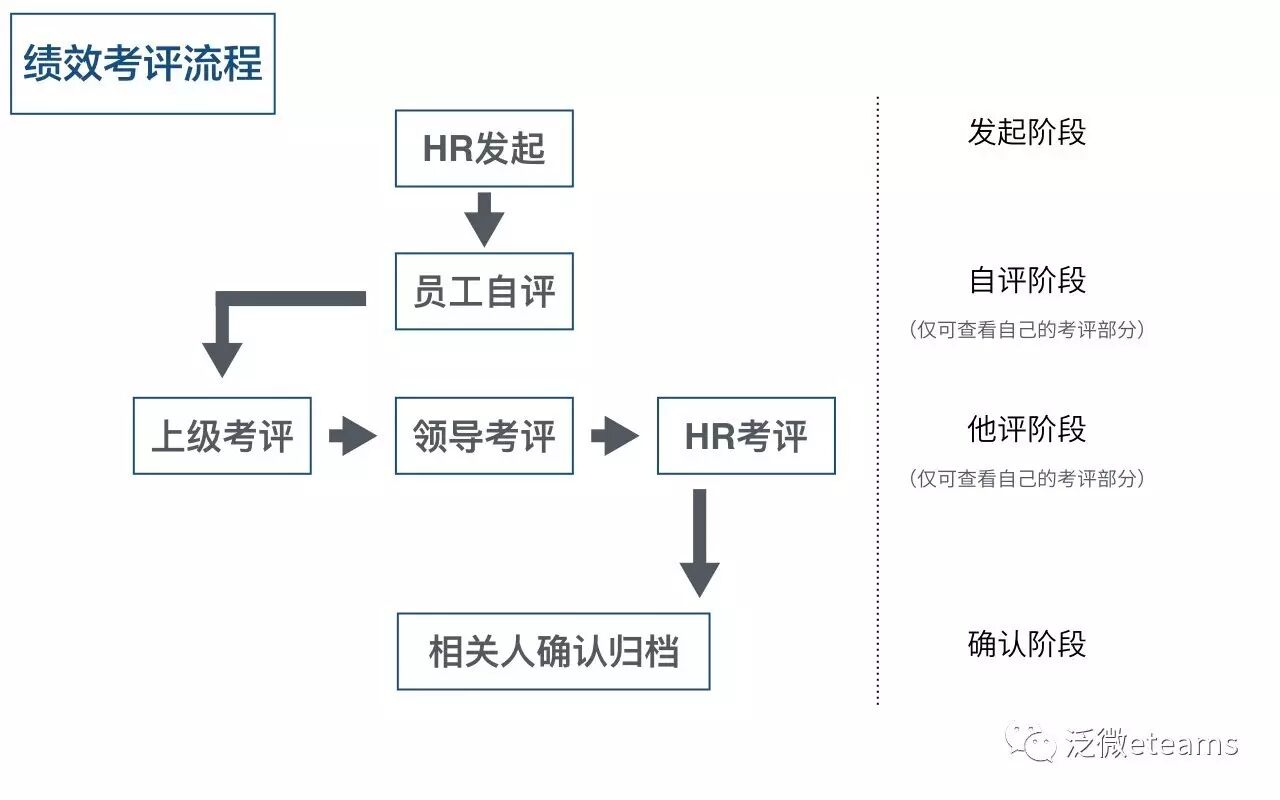 在搭建之前,我们需要先梳理下员工绩效考评的整个流程,参考下图为例: