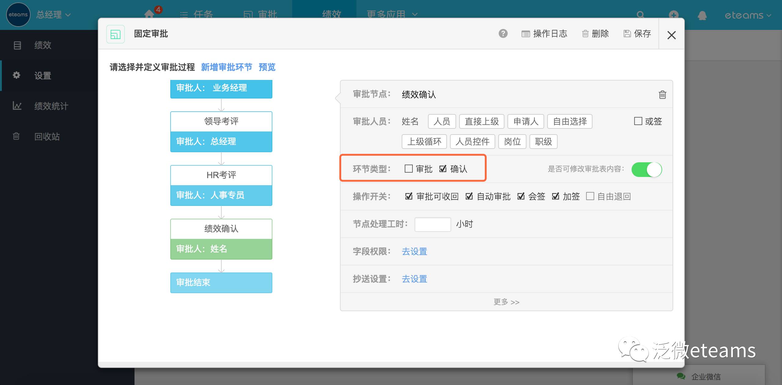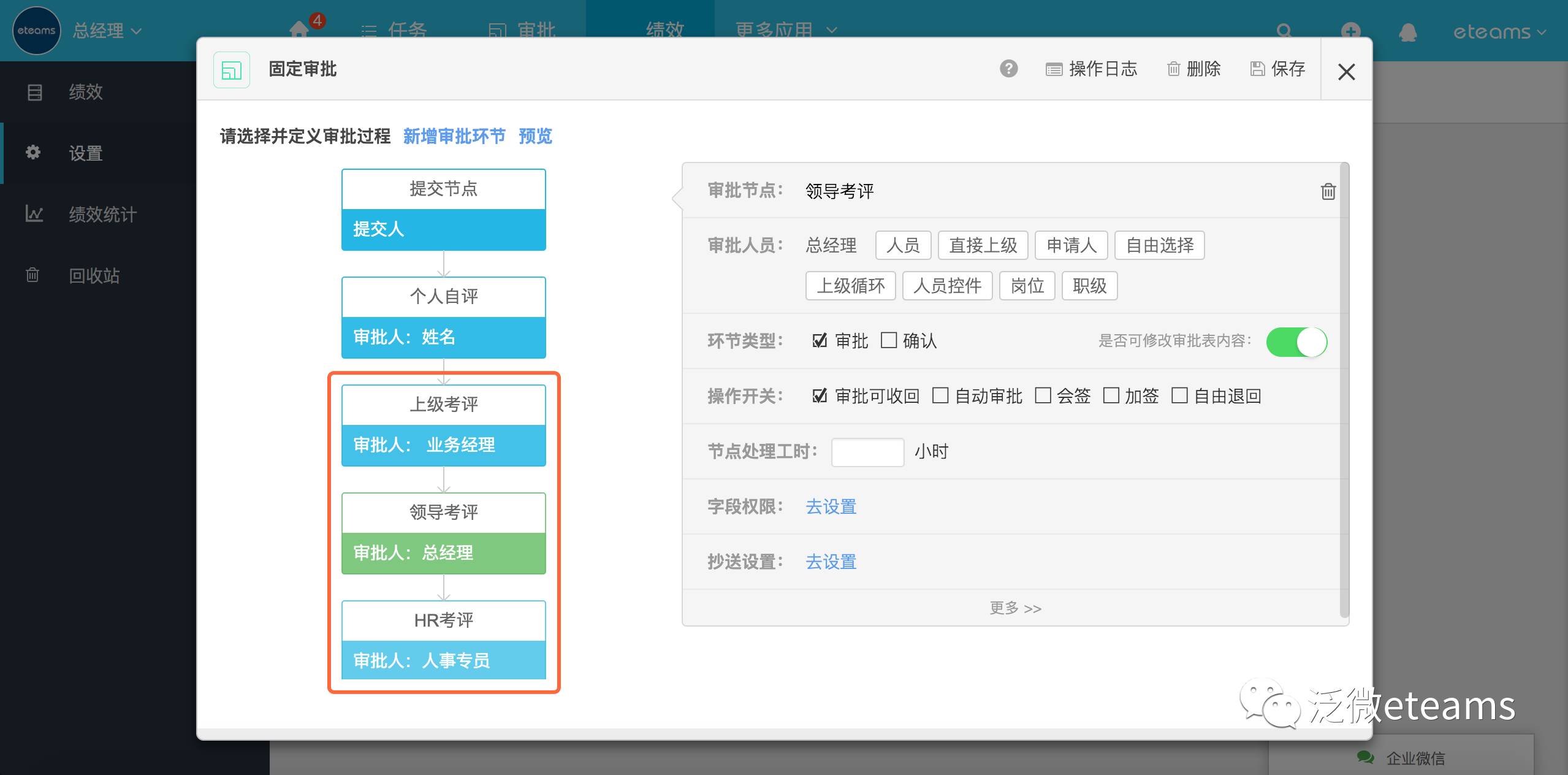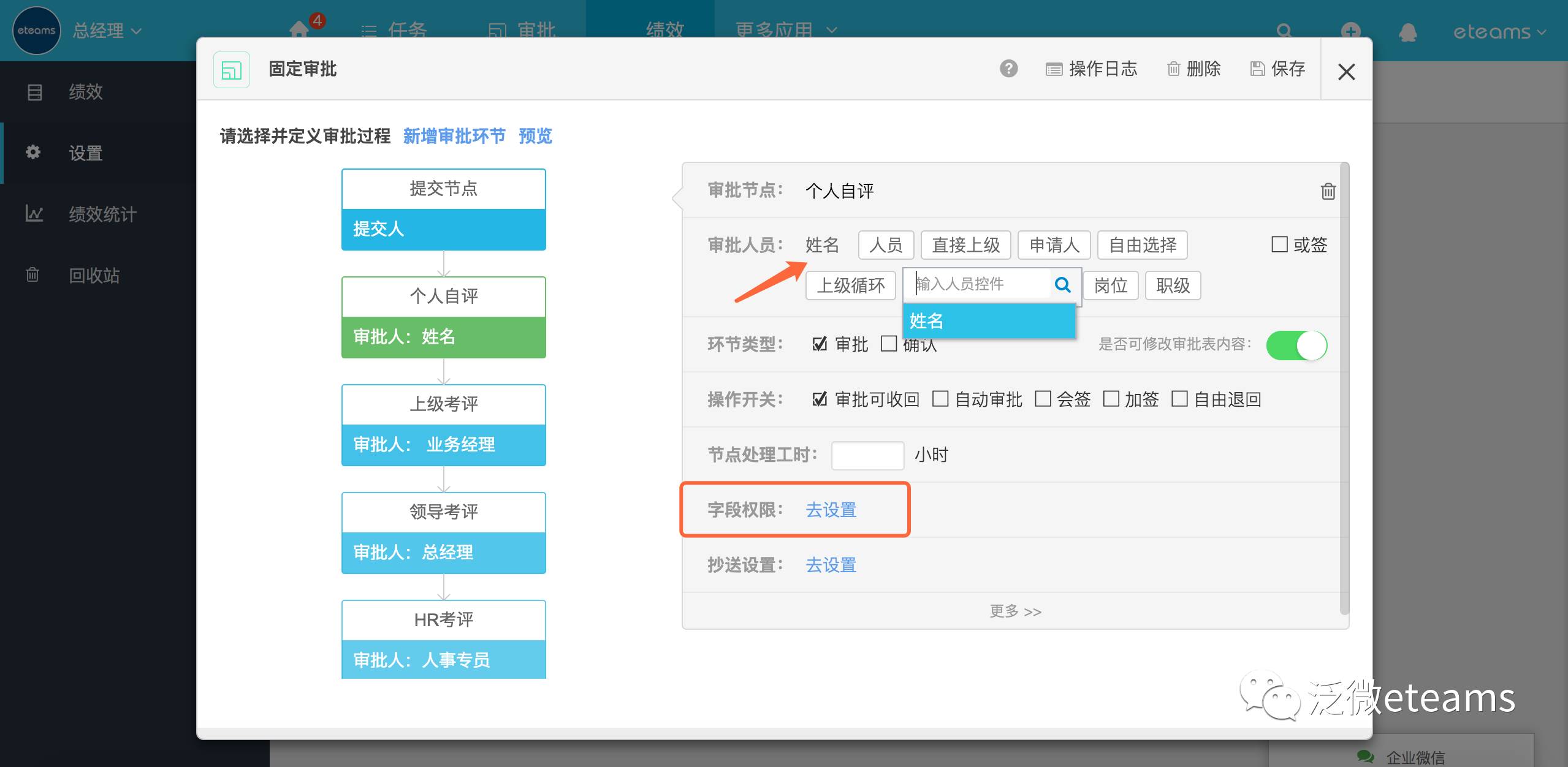 员工自评环节审批对象设置