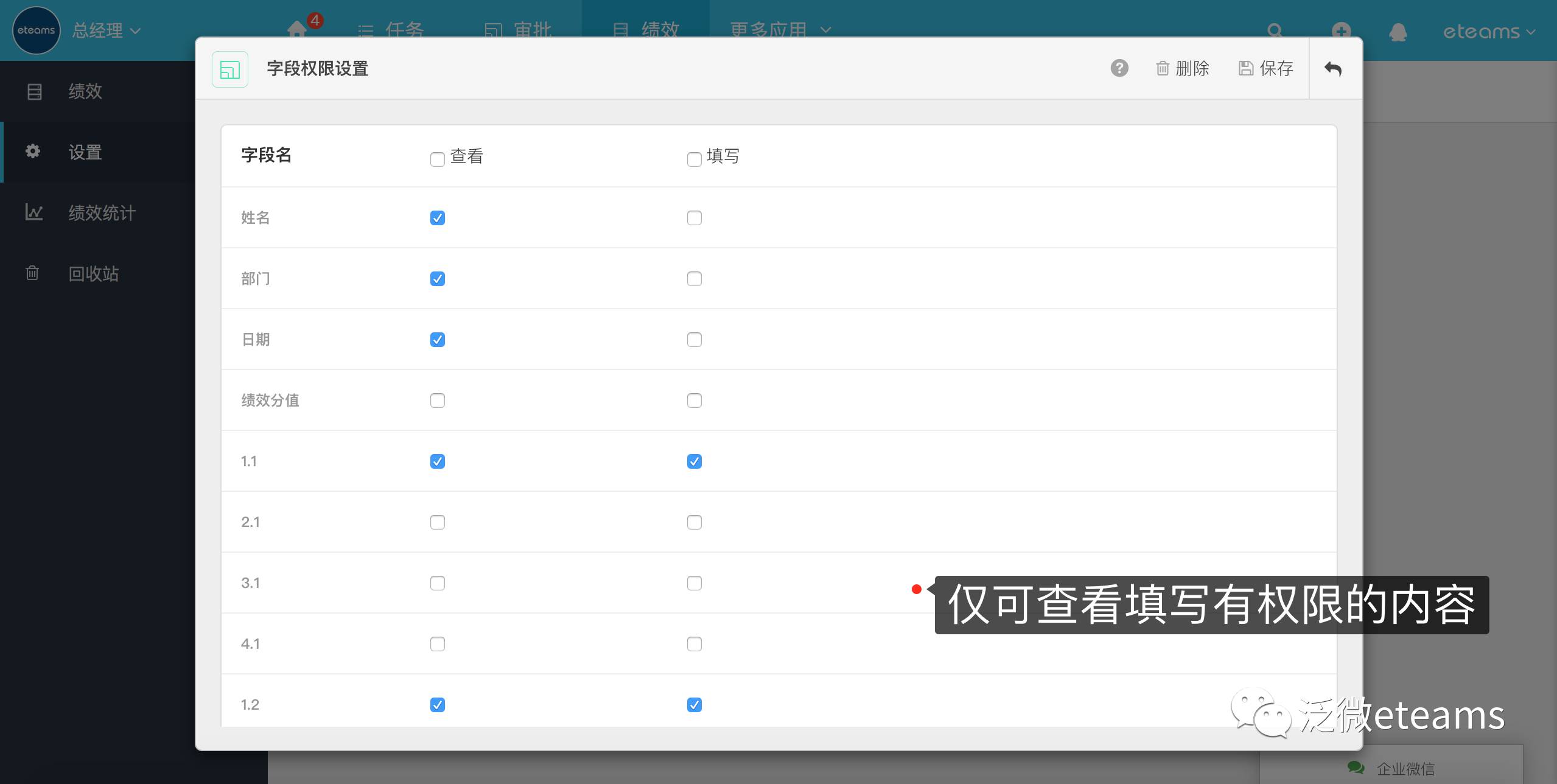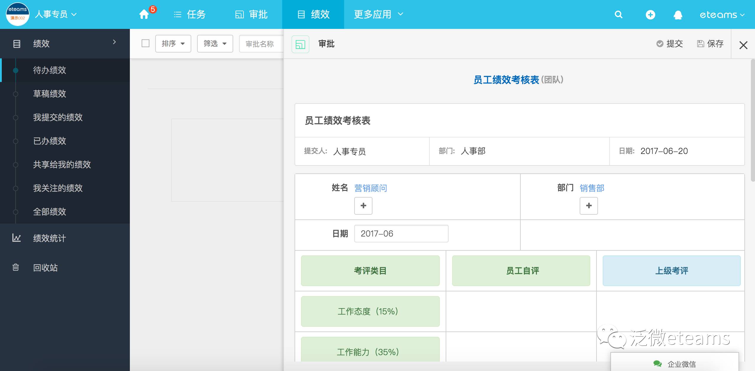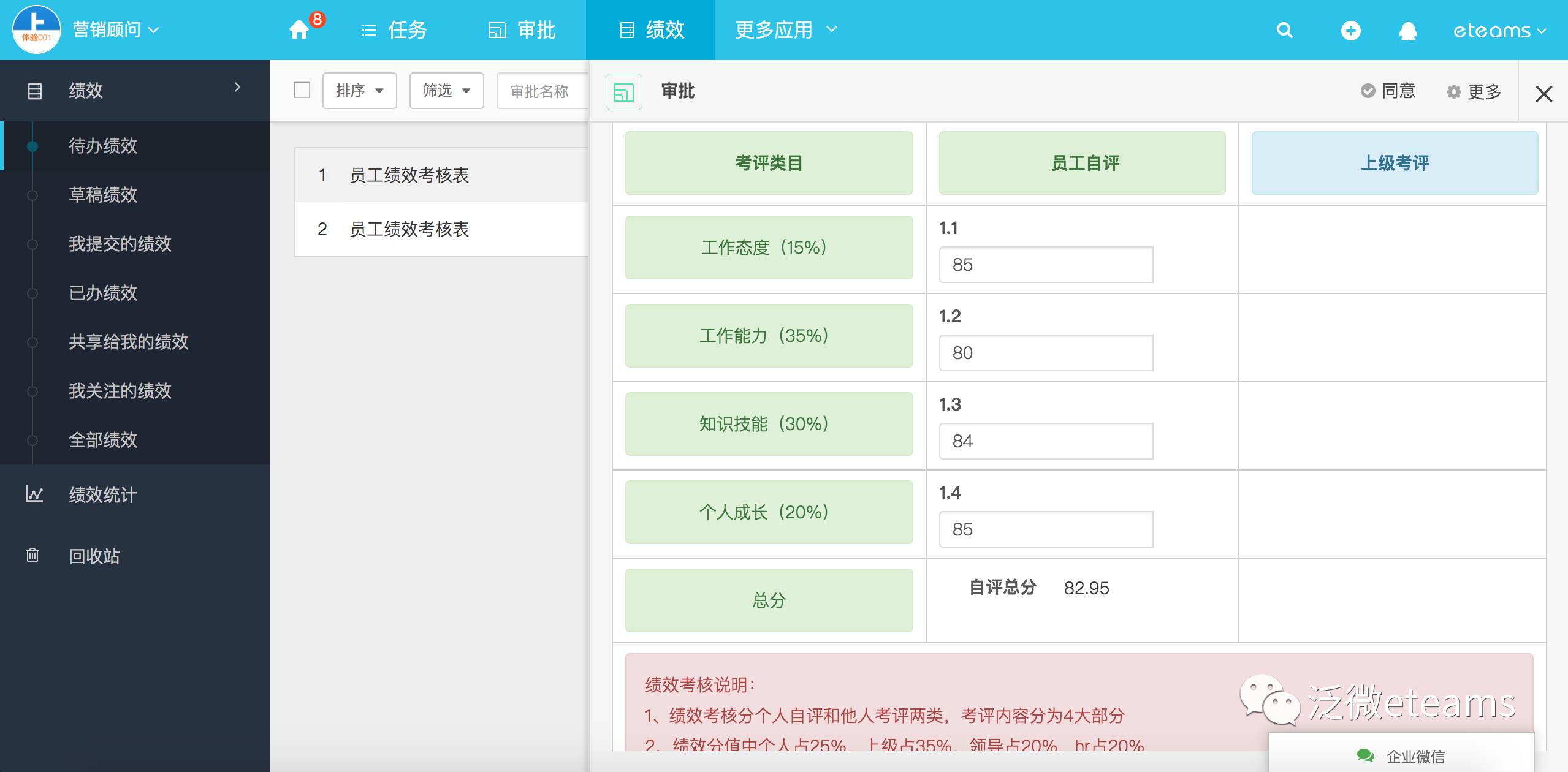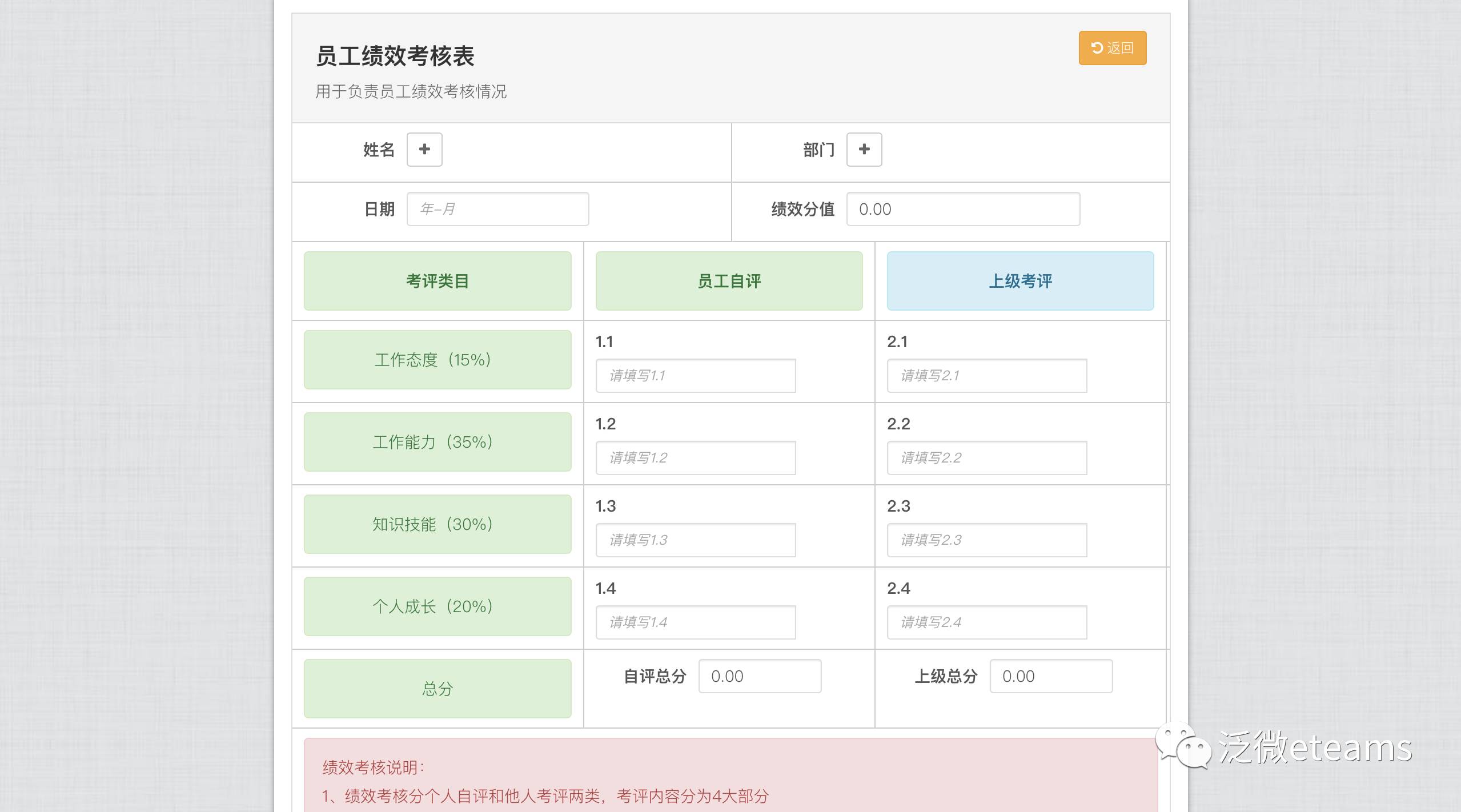 针对以上的这些问题,我们看看泛微eteams中的员工绩效考核应用是如何解决的: