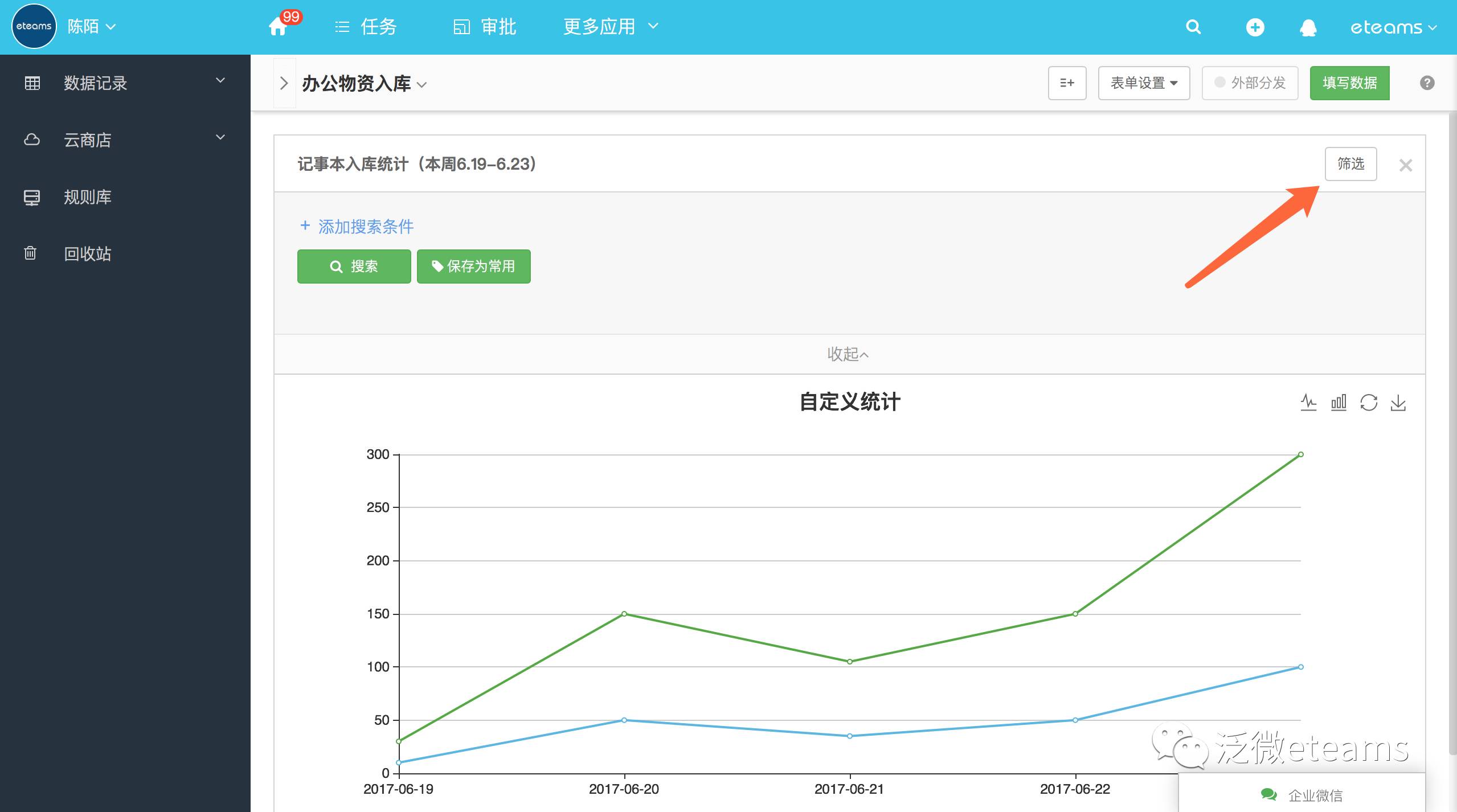 此外,对生成的自定义统计图,我们还新增了数据筛选功能,可以进行统计数据的精准查找。