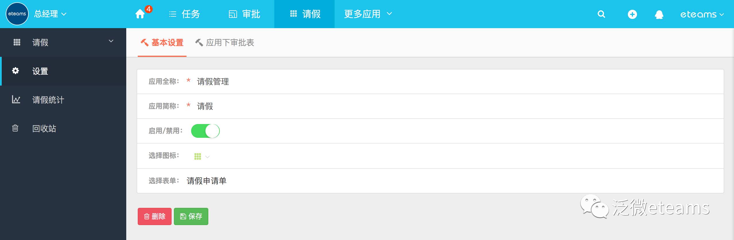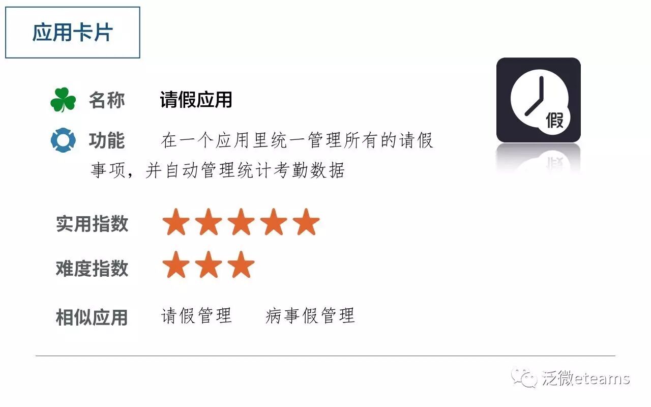 针对以上的这些问题,我们看看泛微eteams中的请假应用是如何解决的,再也不用因为请假流程增加内部不必要的纠纷,也不用为散乱的请假数据统计而烦恼啦~