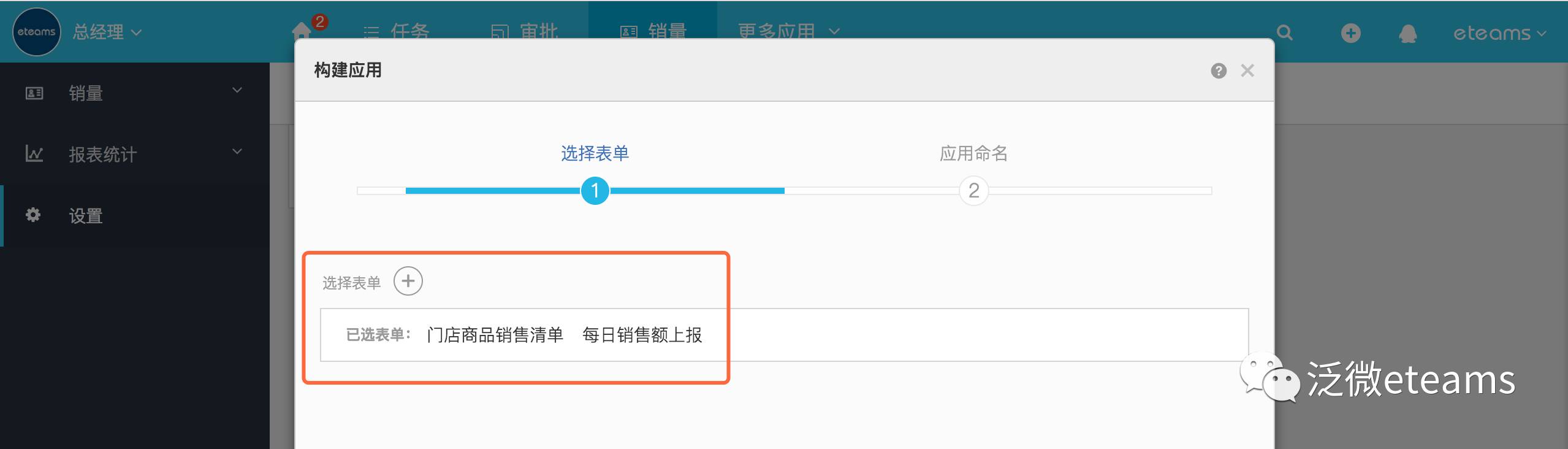 同样的一键将多个表单构建应用,无需来回切换,各门店相关的数据上报工作可以直接在一个应用里完成,小的改变带来的更大的便捷性。具体的操作步骤为在表单中选择【构建应用】并逐步配置应用信息,即可生成个性化应用,拥有与系统基本应用一致的使用体验。