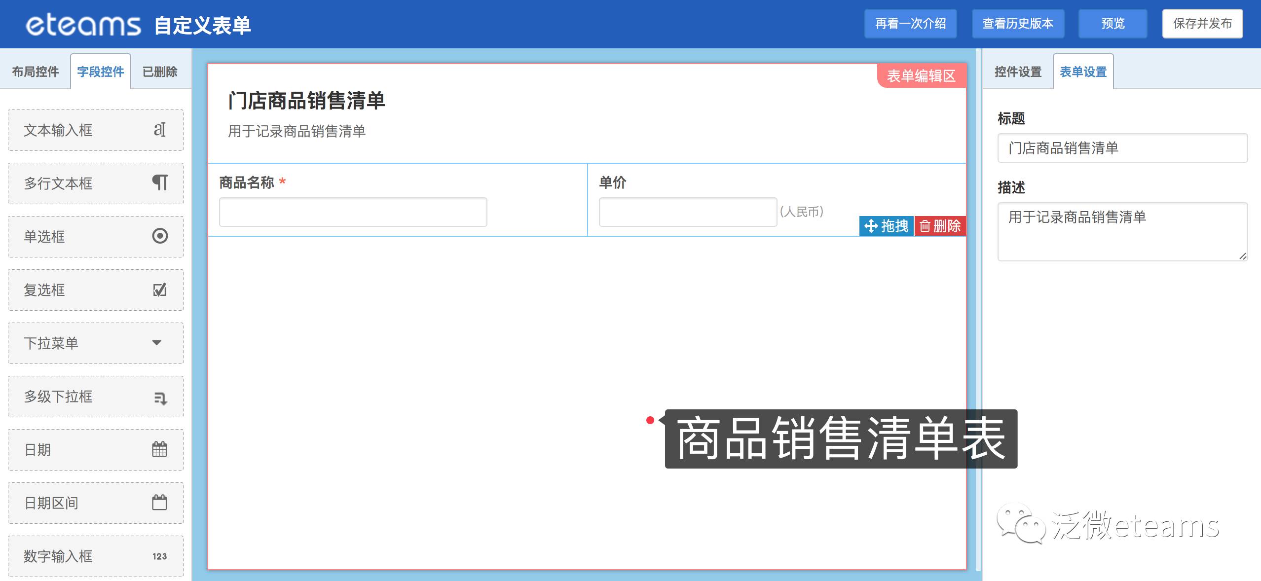 自定义商品销售清单表并配置表单权限