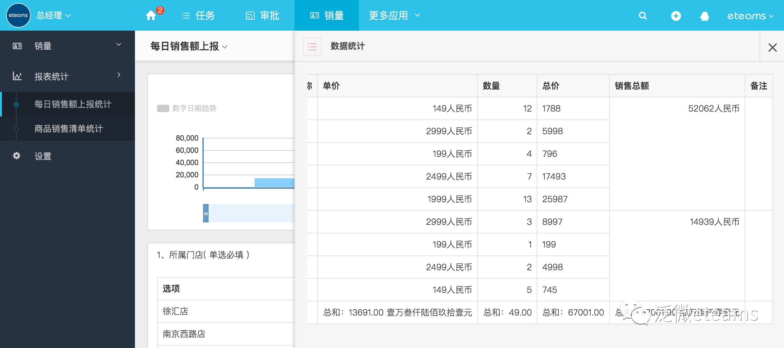 多维度统计分析上报的销售数据情况
