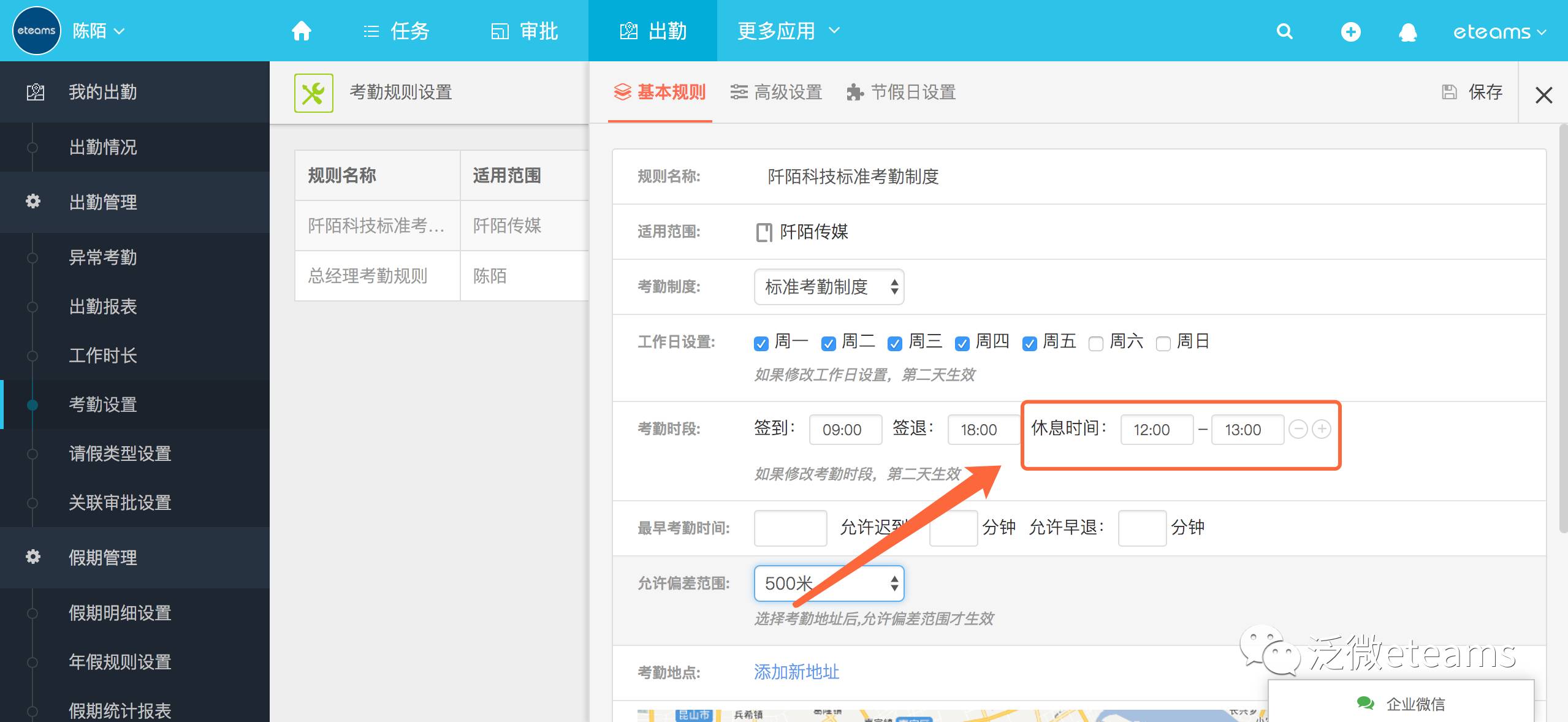1、考勤标准制度新增休息时间,更加贴合我们实际的工作时长的同时,考勤统计更准确方便;
