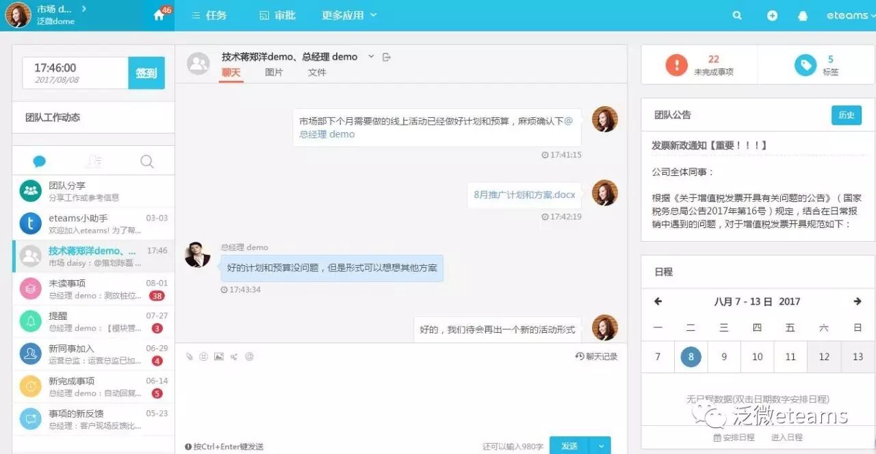 这时候您可能需要一款合适的专业办公软件,泛微eteams一站式移动办公云OA帮您解决所有规范和安全问题,公司转型一步到位,流程化、安全规范的办公方式等待您来免费试用!