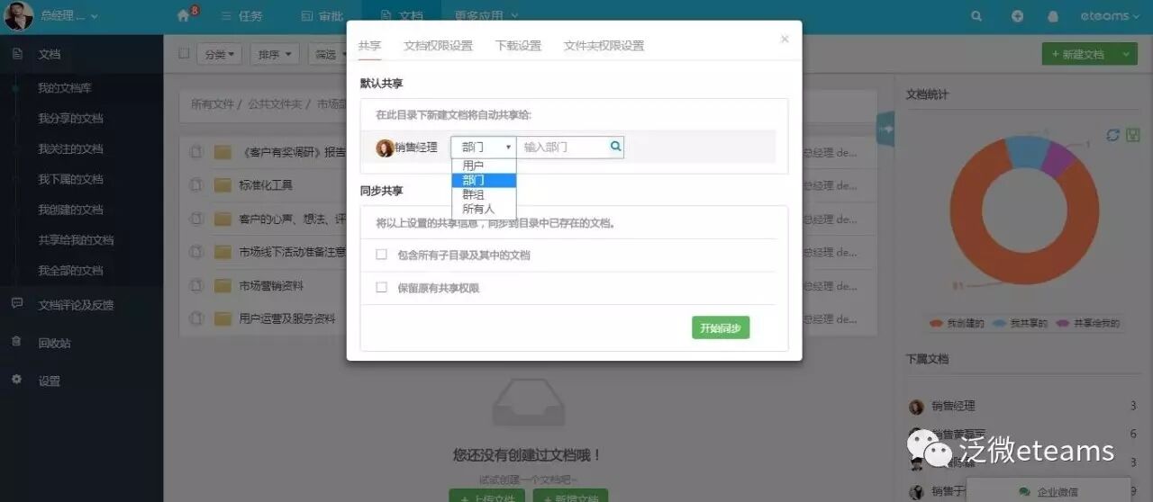 ● 及时与团队共享市场部的知识资源,例如:将市场部存放在「知识文档」中的《客户有奖调研》数据和总结分析报告及时共享给团队成员,共同学习,为客户提供更好的服务体验。