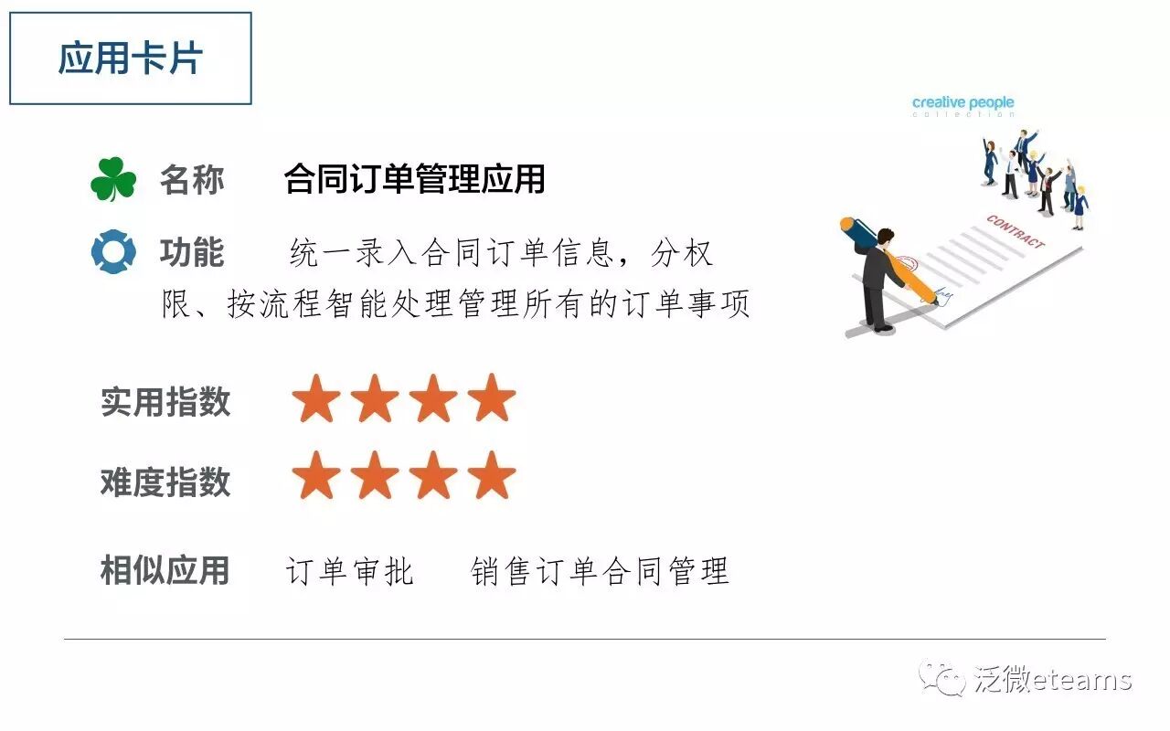 本期带来的是合同订单管理应用,在这个应用中可以高效地实现合同订单的录入提交、分权限的订单信息查看和审核、多维度的审批订单统计分析等。