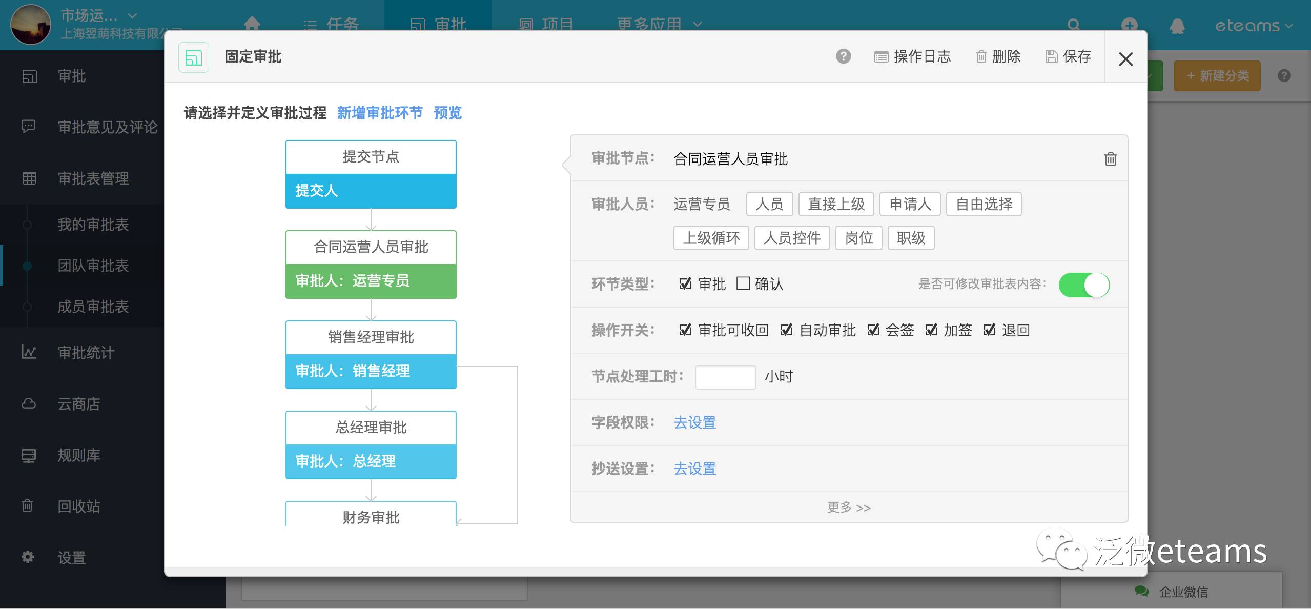 ●除了根据订单类型外,合同订单的金额也会成为审批流转的区分条件。比如金额较小的可以直接负责人审批即可,较大的金额时才需要通过经理处理。