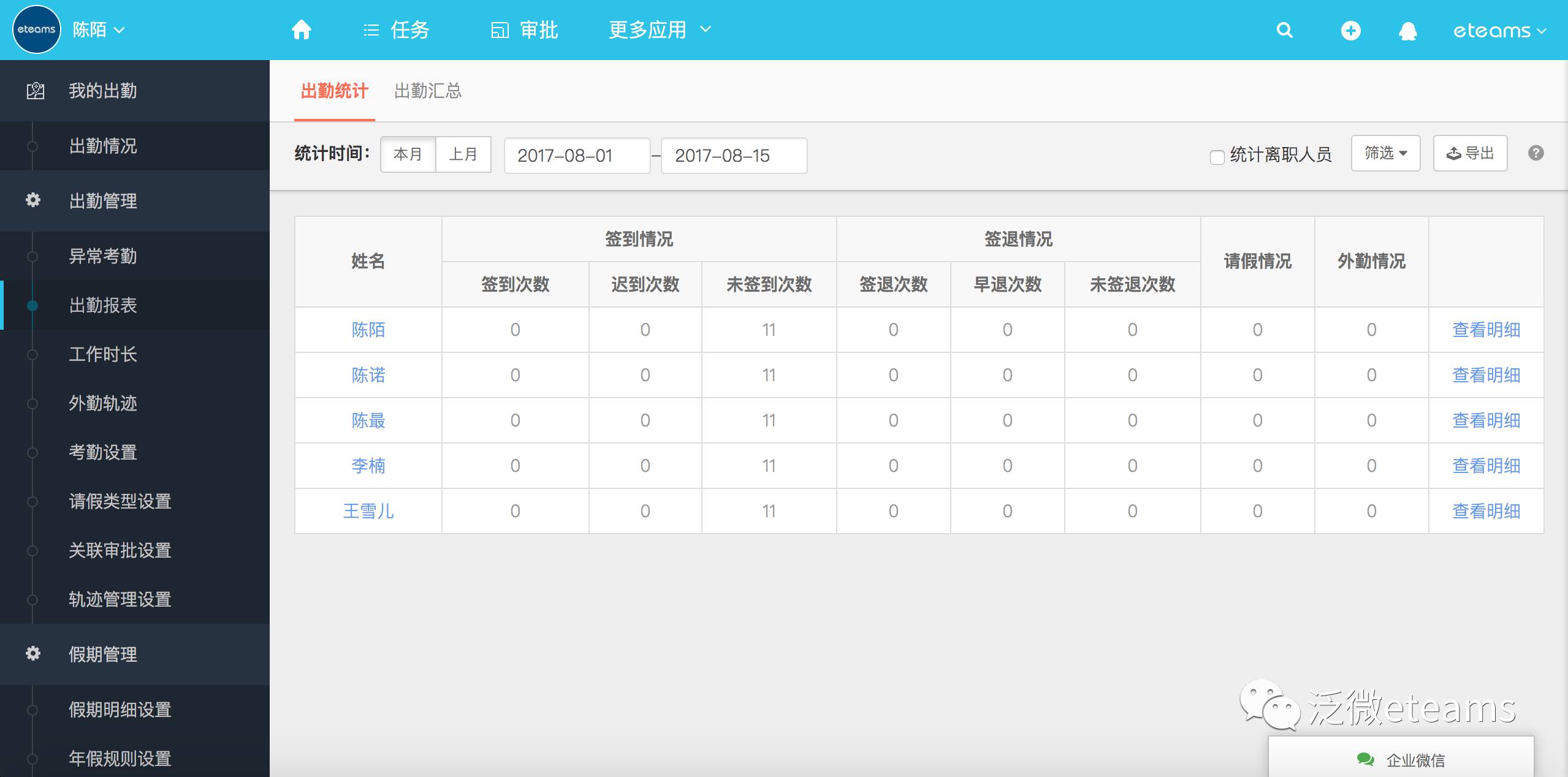 员工的考勤情况是一项基本的考核指标,很多企业也都会设置全勤奖励以及针对迟到早退、缺勤现象的扣罚。每每到月底,这些考勤数据的核算工作就会无差别地折腾到每一个HR,直到使用泛微eteams进行考勤管理——