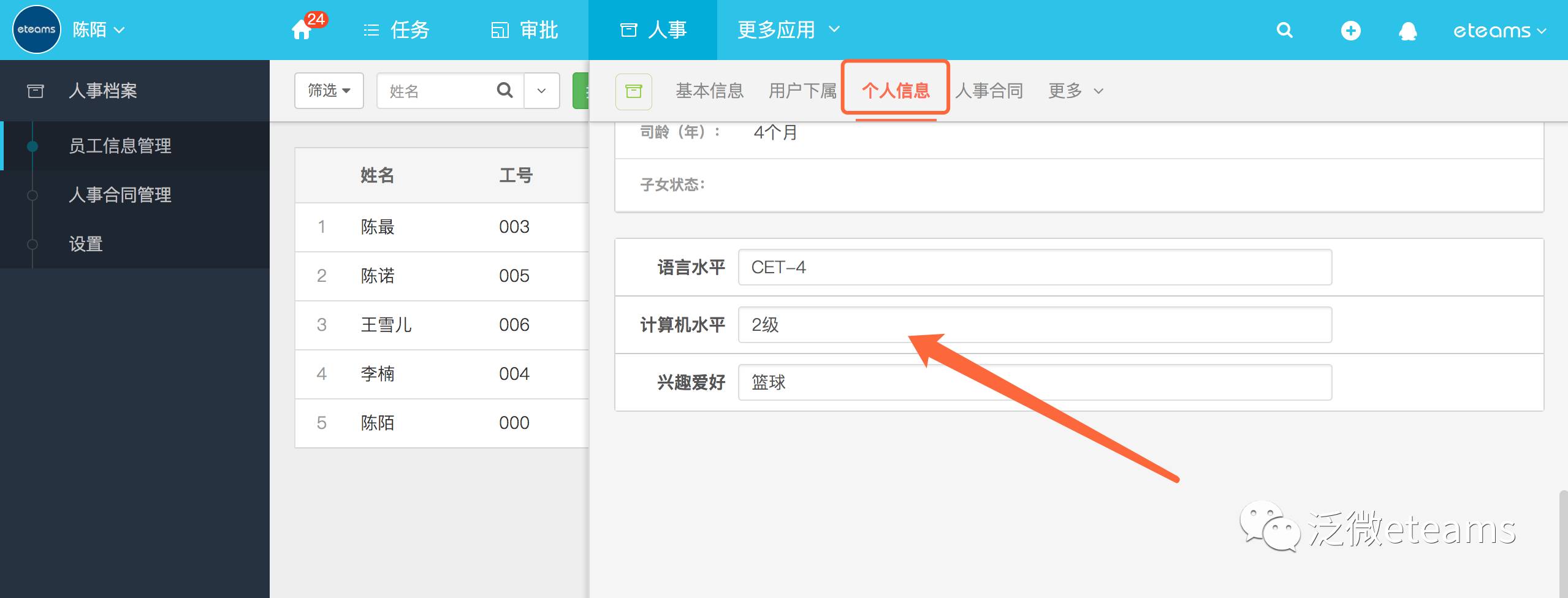1、员工个人信息支持自定义设置,满足企业多样化的人事信息管理需求