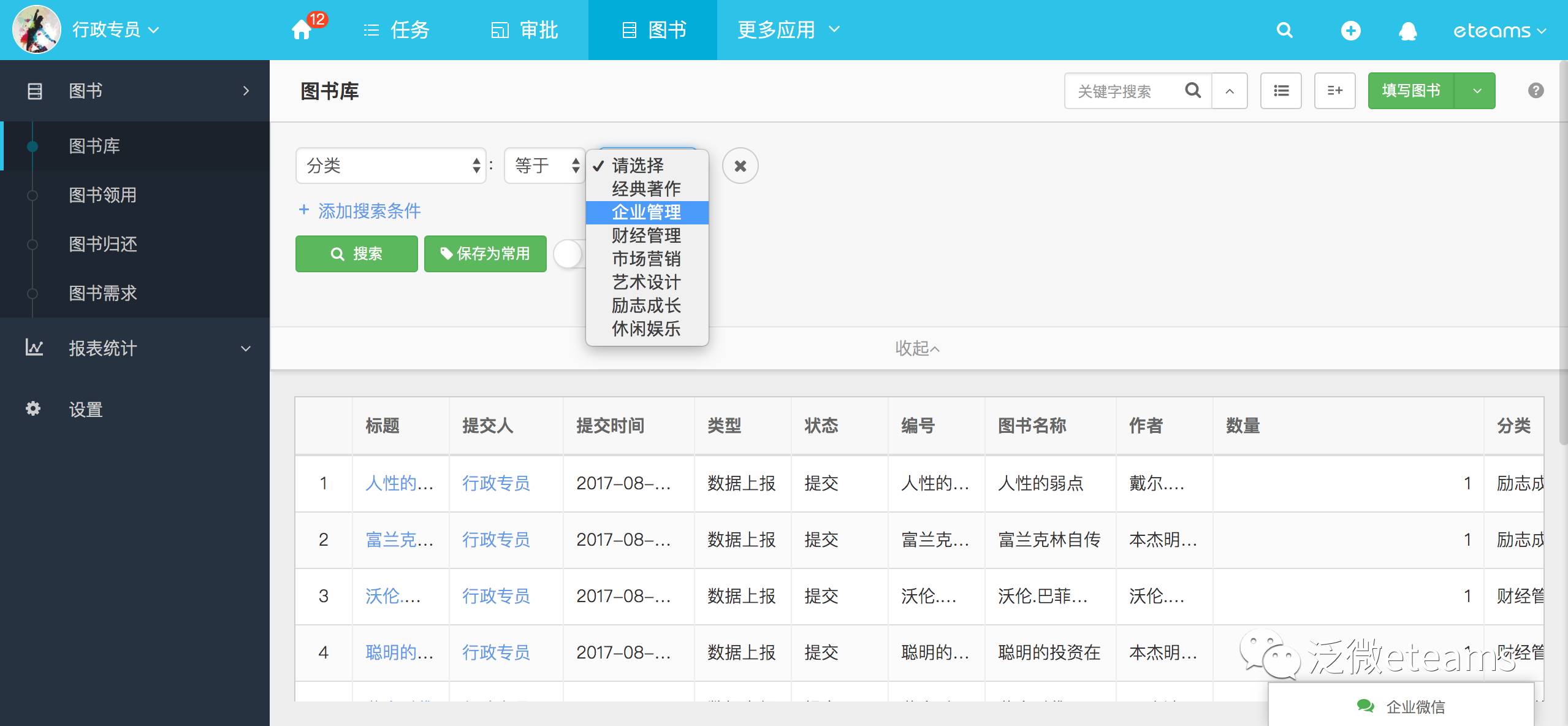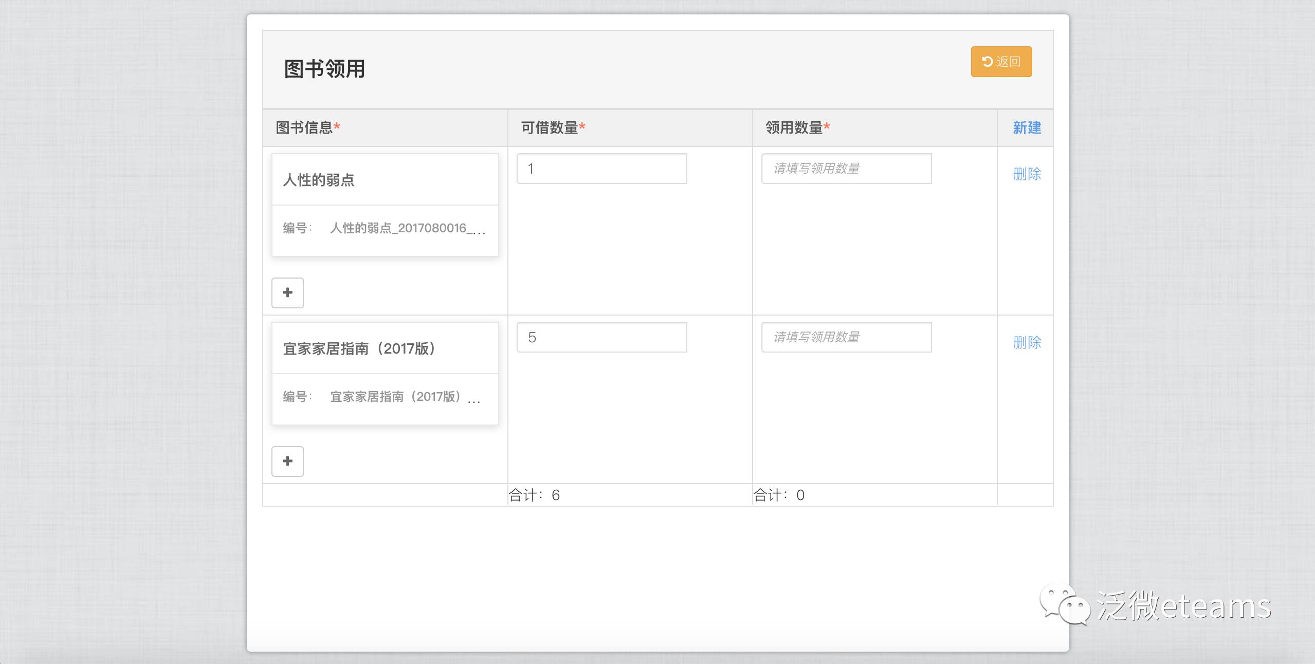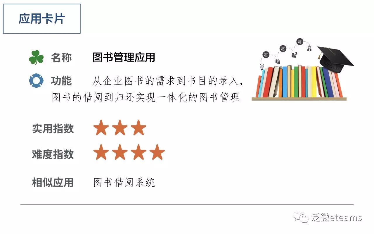 虽然这些图书资料属于企业资产的一部分,但并不是所有的企业都需要为此采购一整套图书信息管理系统,通过eteams表单搭建功能,其实就可以搭建一个简约而不简单的图书管理应用。