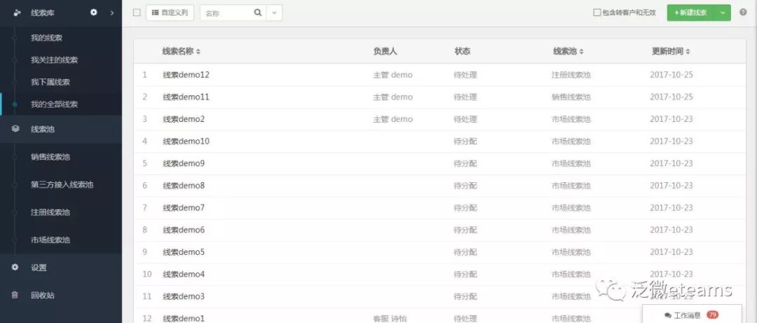 线索冲突控制:所有线索分渠道进入线索库,上级根据销售擅长分配线索,系统自动查重,从源头上避免销售团队内部恶性竞争。