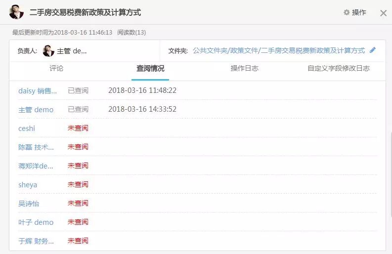 以房屋中介企业为例:市场部门细化部门知识文档后,将收集《客户调研结果报告》的文件夹共享给销售部门,并给销售部门主管新建权限,销售部门共享和优化市场部工作成果的同时,限制了普通员工随意更改和添加导致文档管理混乱的现象。