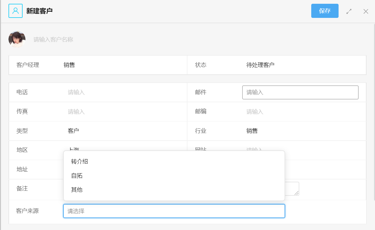 为了更好区分哪些客户是客户推荐的,哪些客户是自己开拓的,可自定义增加一个客户信息字段“客户来源”,每次创建卡片时即可快速标记客户来源