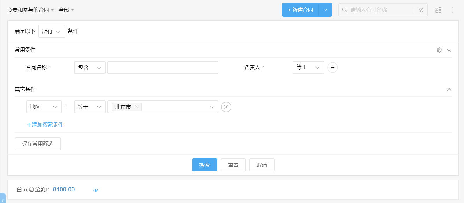 在合同模板中增加“地区”,建立合同时快速标记,就可以按照需求来分类管理不同地区的合同