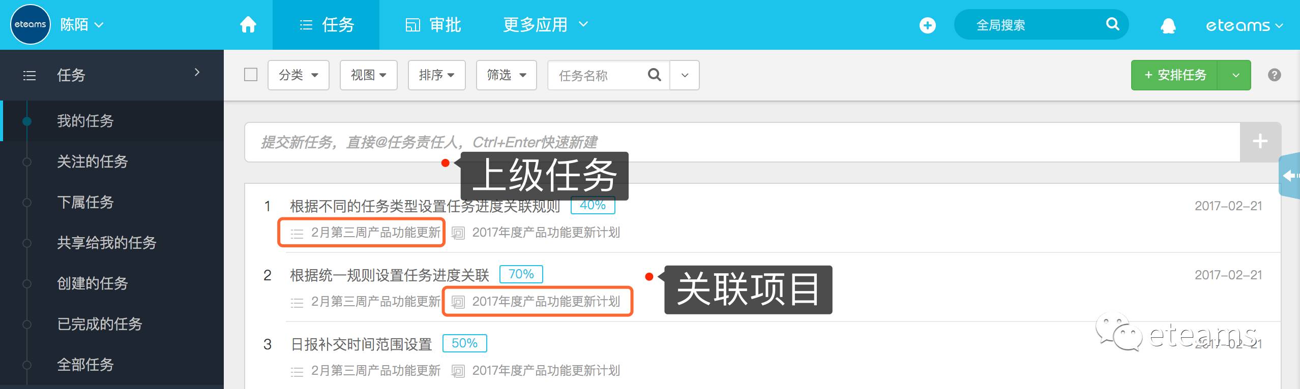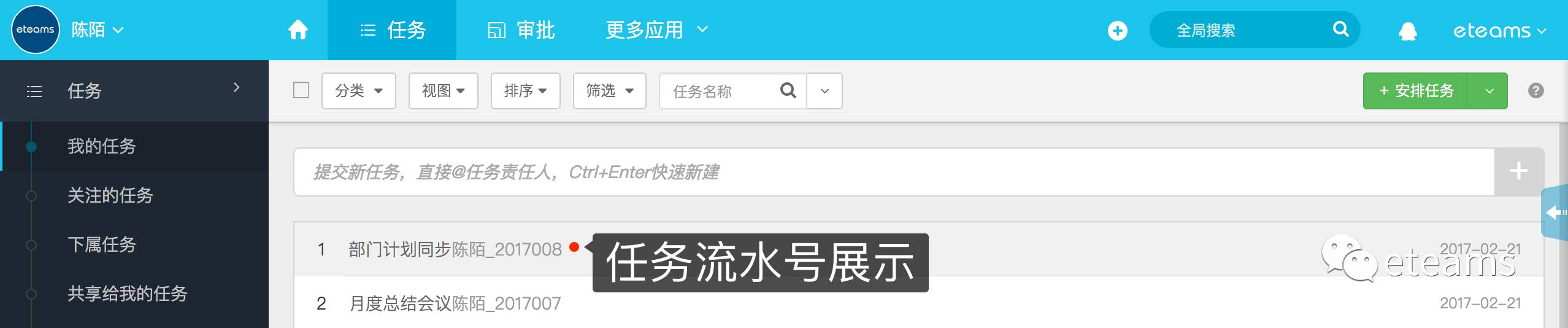 eteams也许是你想要的答案。刚好,eteams云办公的任务协作模块近期新动作不断,陆续有很多实用的新特性上线,借这个机会这次小e想跟大家好好聊聊,统一为大家梳理下这些新的技巧。也许在团队协作中,这样才是任务协作应用正确的使用姿势。