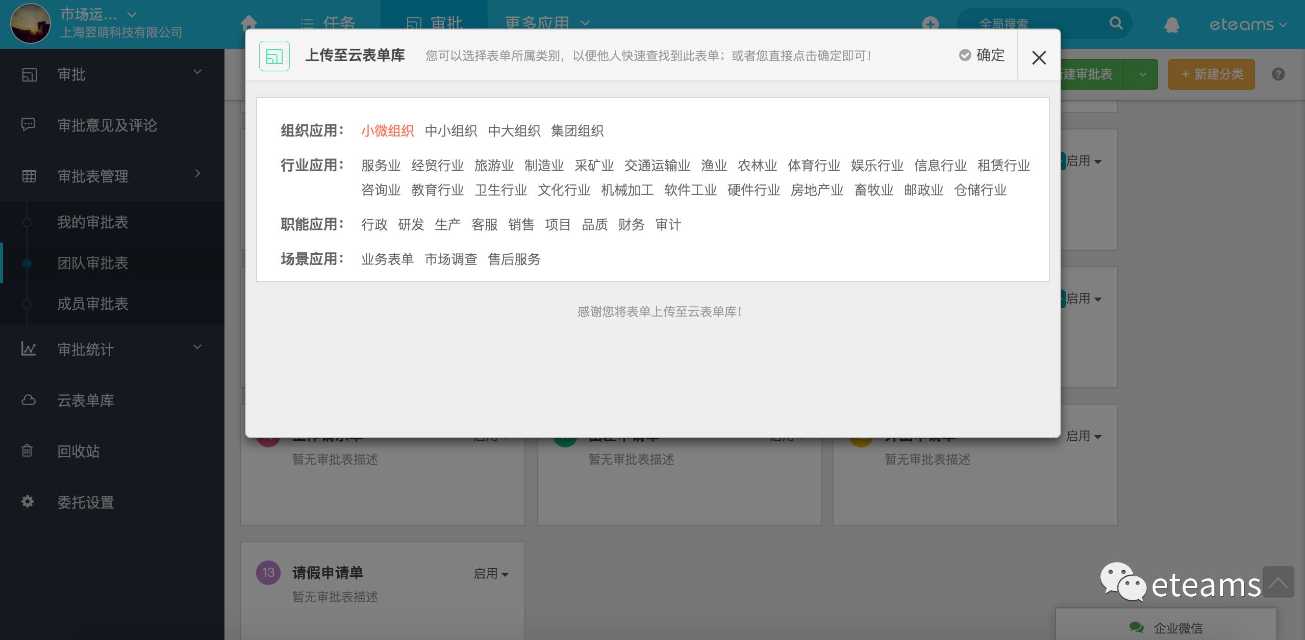 除了快捷一键形成应用外,我们还提供了开放的云端表单库,任何优秀的表单,欢迎大家进行上传,实现高效协作的共享。
