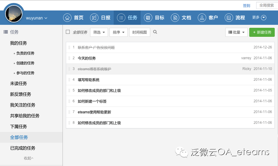 3、全部任务列表、已完成的任务显示成灰色,中划线