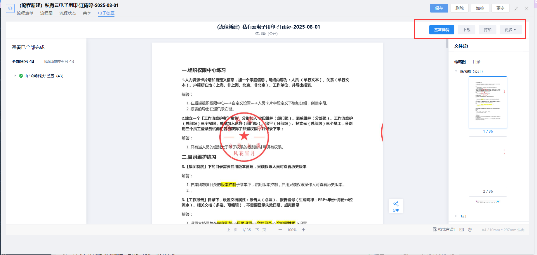 STEP3:完成签署,流程归档。可查看完成签署的文件,进行验签、下载、打印等一系列管理操作。