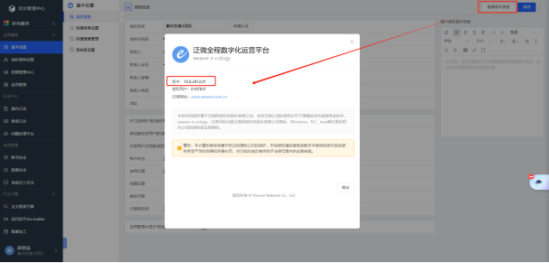 注意说明:EB日程管理对环境最低基线要求是10.0.2510.01基线,基线版本可在系统设置-基本设置-查看版本信息里查看;